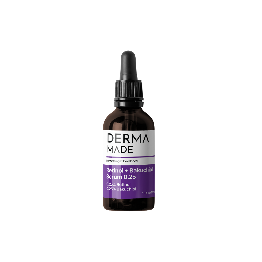 Derma Made's Retinol + Bakuchiol Serum (1.0 fl oz) targets all signs of aging from lines and wrinkles, to dark spots and skin sagging. Retinol and bakuchiol support the skin renewal process to clear up blemishes and are well suited for problem skin.